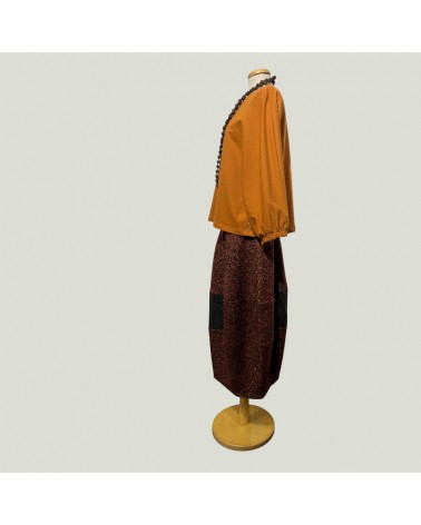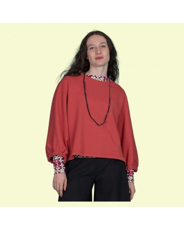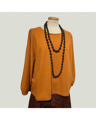 Maglia felpa tinta unita ruggine con manica a tre quarti TG S