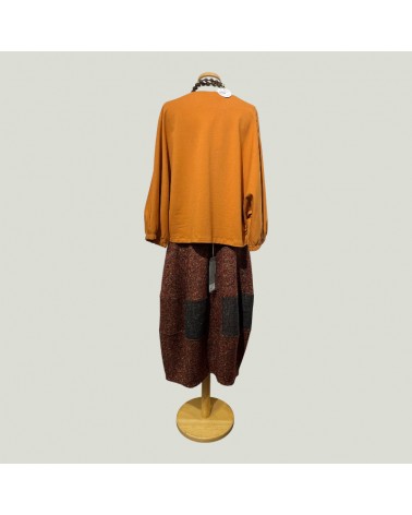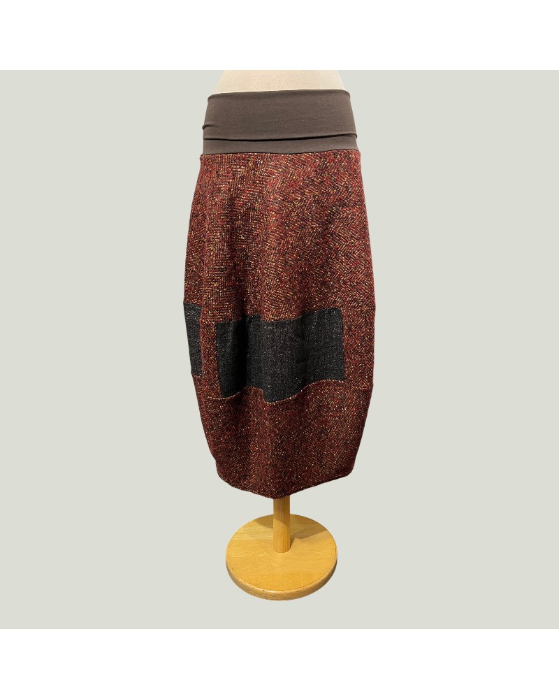 Gonna lunga in fibre naturali realizzata in Italia, produzione sartoriale, modello uovo con fascia elastica; comoda anche per le donne in gravidanza.