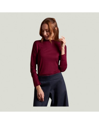 Maglia bordeaux sartoriale donna in cotone e lana collo alto.