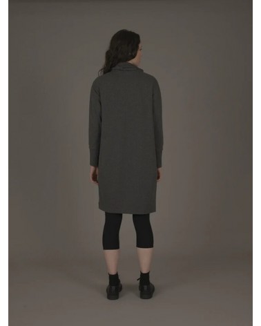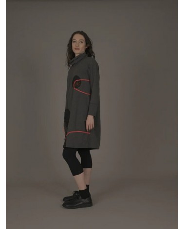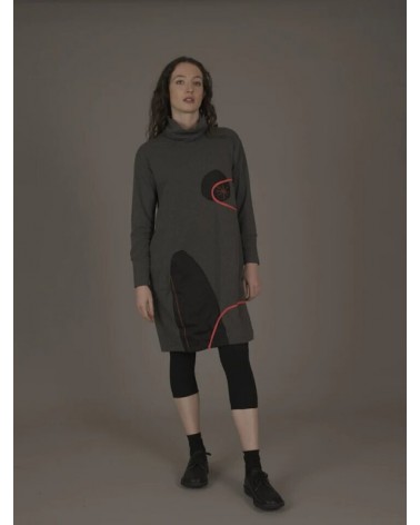 Abito in felpa a ovetto con collo alto e applicazioni in maglina e tessuto a contrasto.