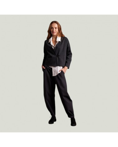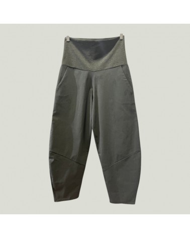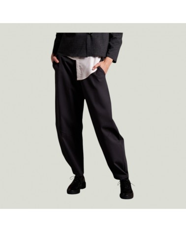 Pantalone sartoriale largo in lana con fascia elastica in viscosa e lana.