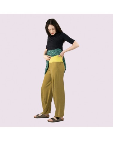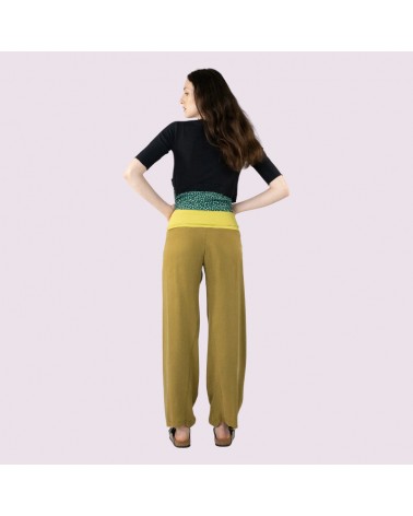 Pantaloni tagliati in sbieco, in cotone, con cinturino alto in jersey risvoltabile.