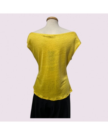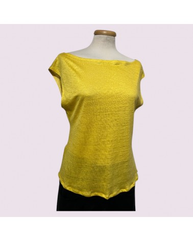 Maglia a manica corta dal taglio slim, realizzata artigianalmente in Italia con jersey di lino naturale morbido e traspirante.