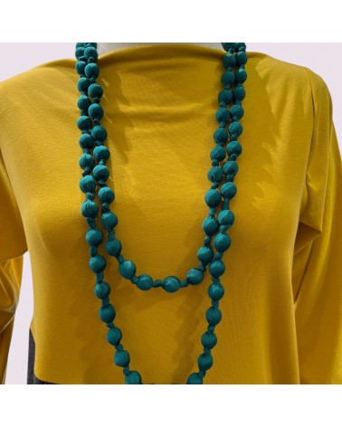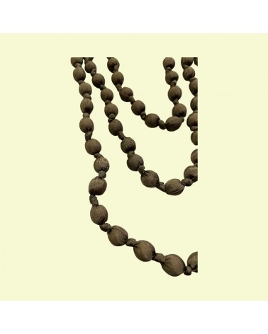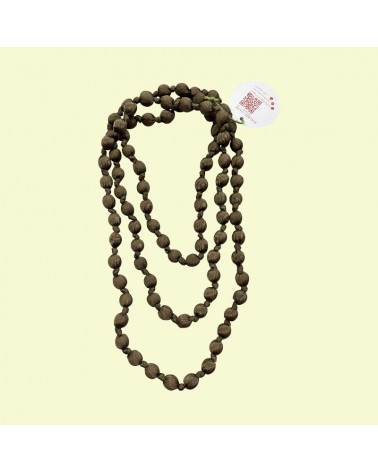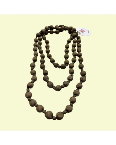 Collana beige scuro lunga in seta e perle di legno leggere tinture ecologiche azo-free.