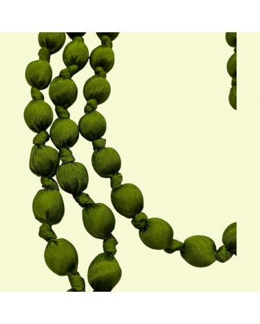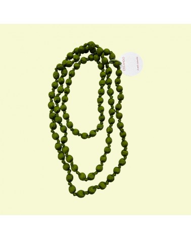 Collana verde acido lunga in seta e perle di legno leggere tinture ecologiche azo-free.