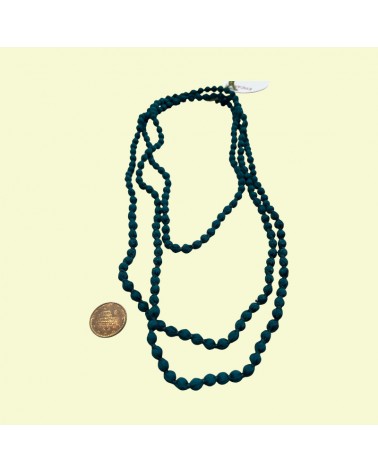 Collana ottanio in seta e perle piccole di legno leggere tinture ecologiche azo-free.