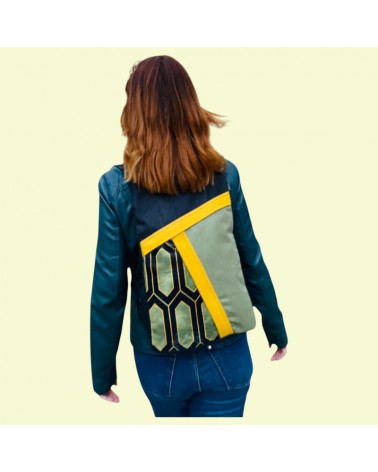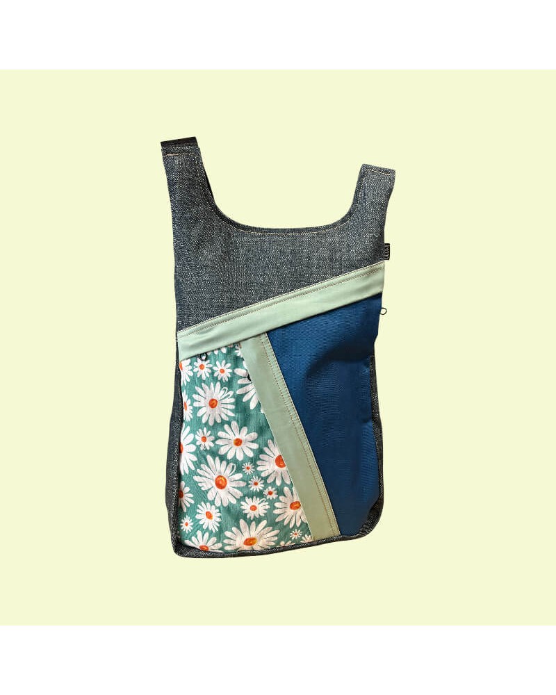 Zaino artigianale in tessuto margherite con quattro scomparti.