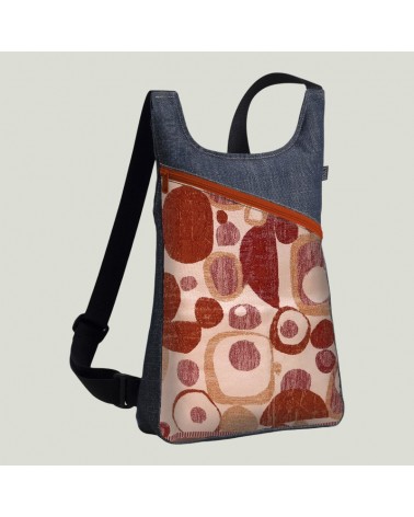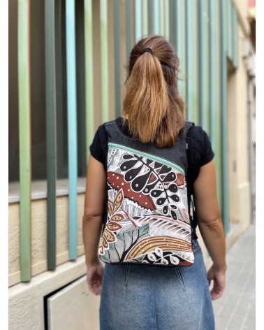 Lo zaino è realizzato con una base di tessuto jeans e tessuto stampato per il fronte.