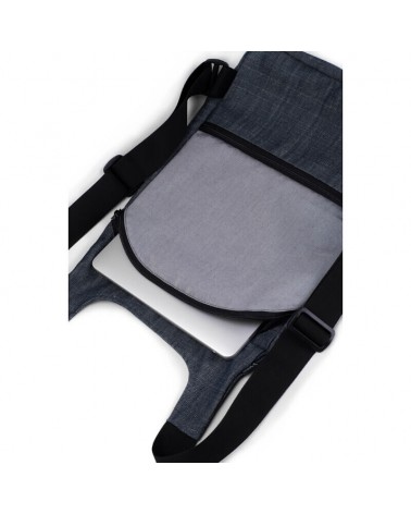 Lo zaino è realizzato con una base di tessuto jeans e tessuto stampato per il fronte.