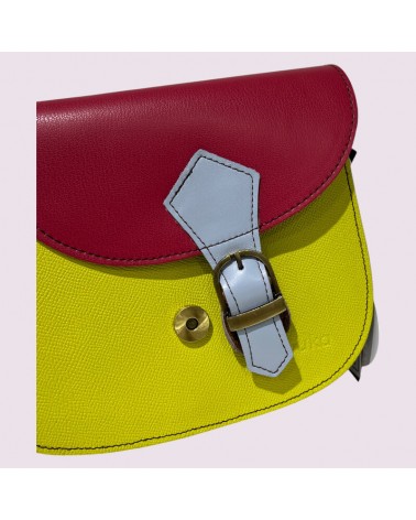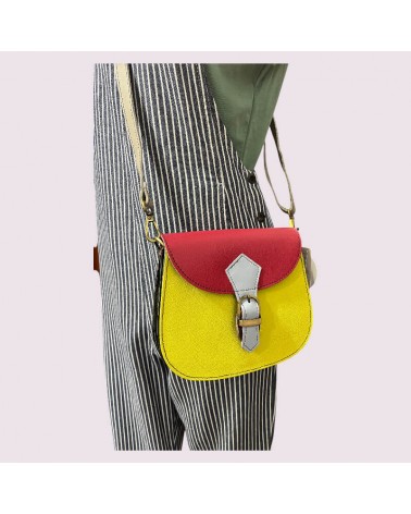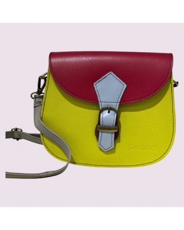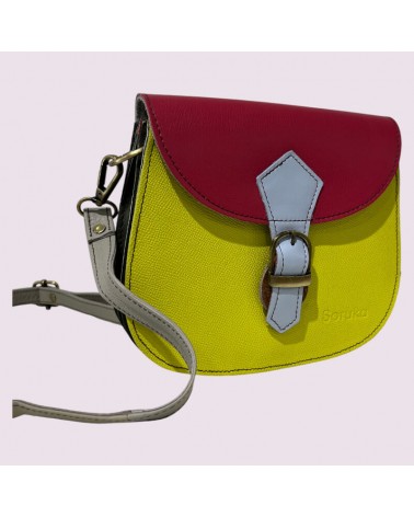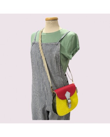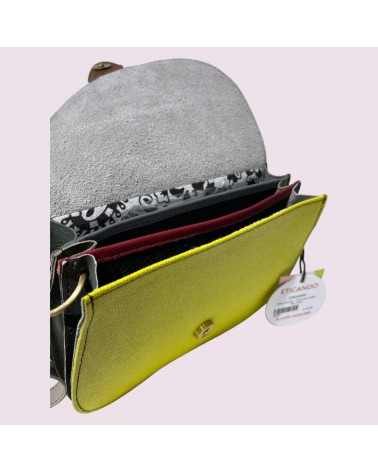 Borsa ecologica in pelle riciclata gialla con tracolla.
