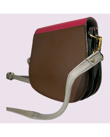 Borsa piccola in pelle riciclata con tracolla realizzata a mano da artigiani in India.