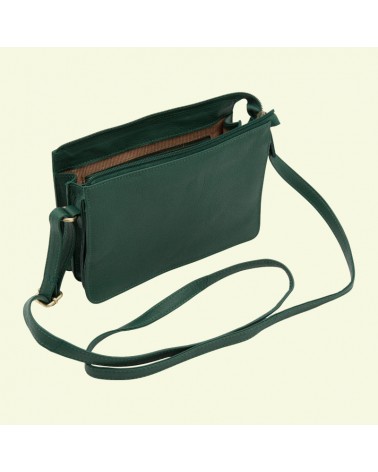 Borsa artigianale in pelle verde – piccola a tracolla compatta