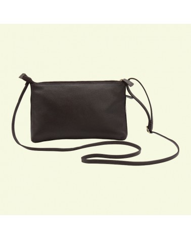Borsa piccola in vera pelle marrone, realizzata artigianalmente con materiali di alta qualità provenienti da filiere etiche e sostenibili.