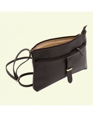 Borsa artigianale in pelle marrone con tracolla – formato piccolo