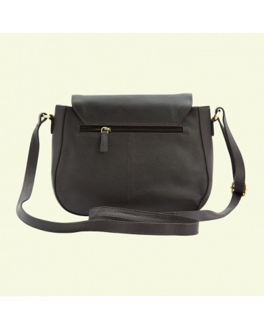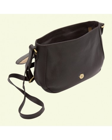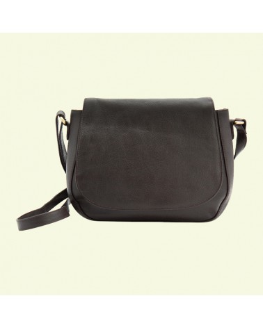 Borsa a tracolla media in morbida nappa bovina, realizzata artigianalmente all’interno di progetti di commercio equo e solidale.