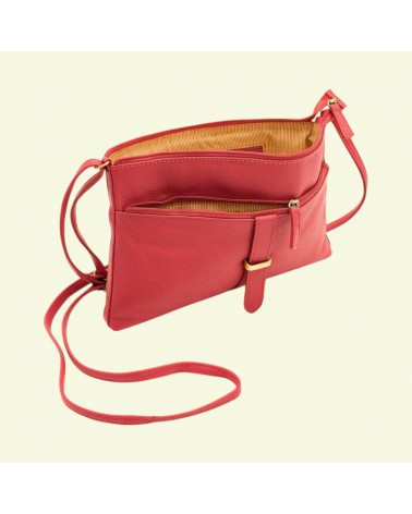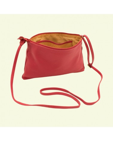 Borsa piccola in vera pelle rossa, realizzata artigianalmente con materiali di alta qualità provenienti da filiere etiche e sostenibili.
