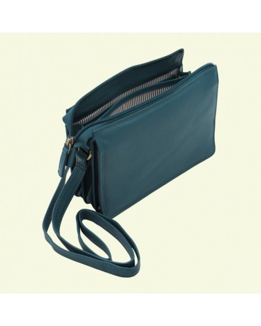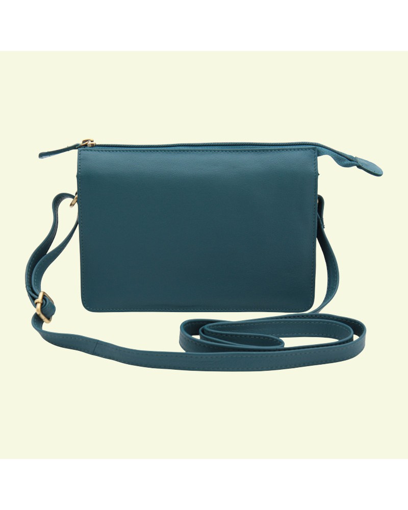 Borsa artigianale in pelle turchese – piccola a tracolla compatta