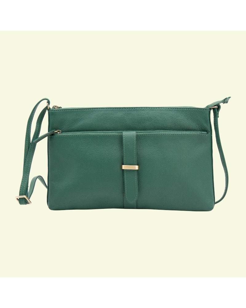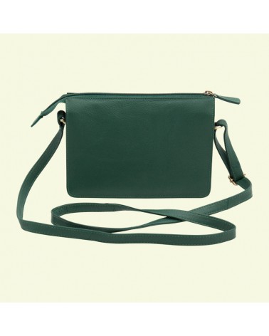 Borsa artigianale in pelle verde con tracolla – formato piccolo