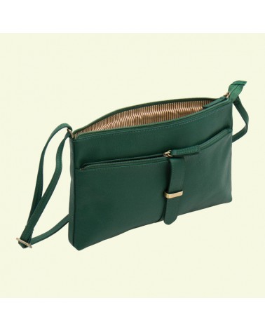 Borsa piccola in vera pelle verde, realizzata artigianalmente con materiali di alta qualità provenienti da filiere etiche e sostenibili.