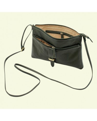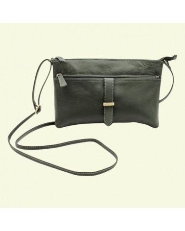 Borsa artigianale in pelle verde scuro piccola a tracolla