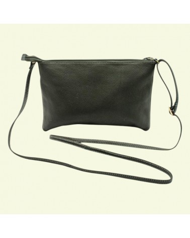 Borsa piccola in vera pelle verde scuro, realizzata artigianalmente con materiali di alta qualità provenienti da filiere etiche e sostenibili.