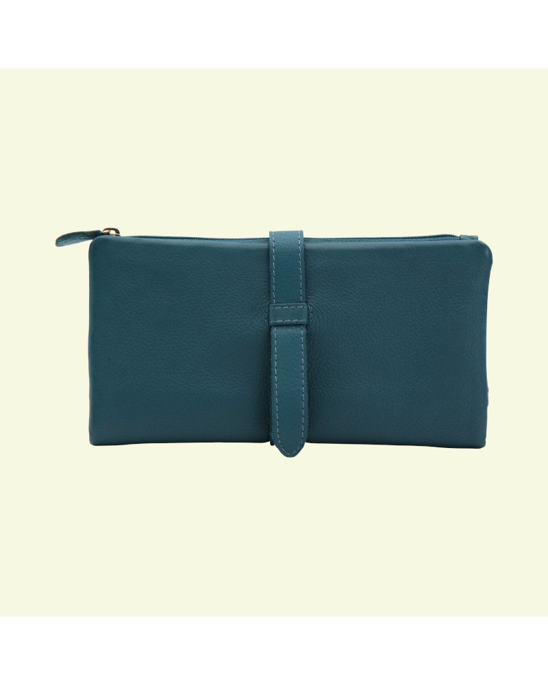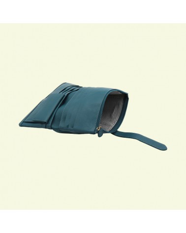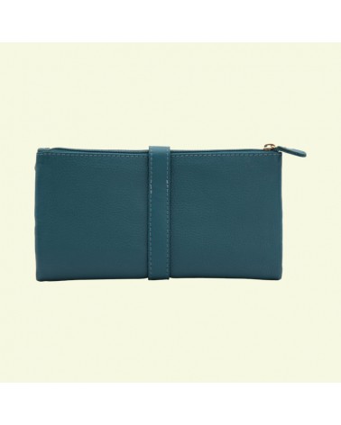 Portafoglio donna in pelle turchese - chiusura zip, interno organizzato