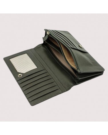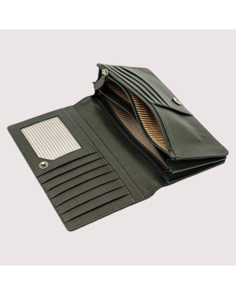 Portafogli donna in pelle verde foresta equosolidale.