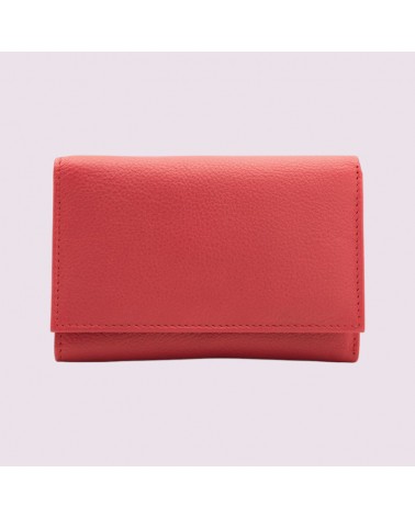 Portafoglio donna in morbida nappa bovina con all’interno una tasca zip per le monete, due scomparti a soffietto per le banconote e vari porta carte chiusura con un automatico. Interno foderato in cotone a righe. Tasca esterna con zip.