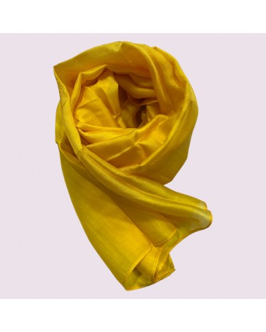 Sciarpa in seta gialla elegante con tinture ecologiche filo sottile pregiato.