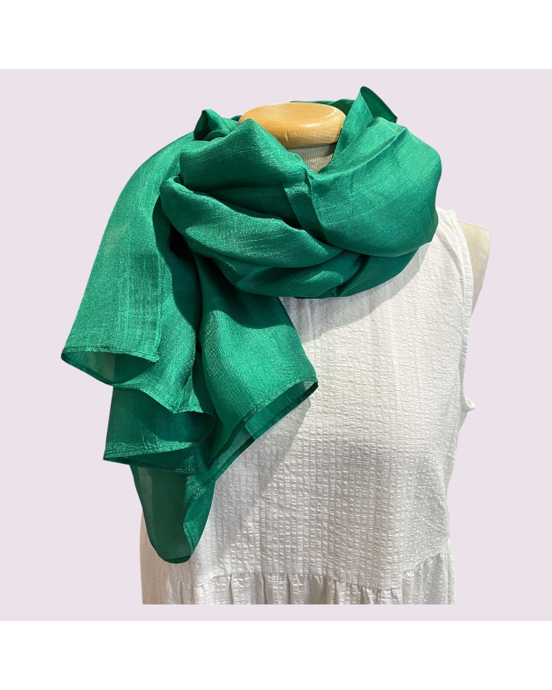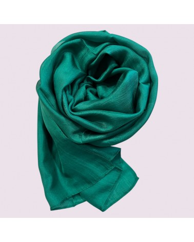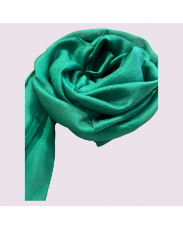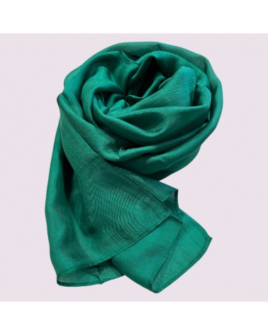Sciarpa in seta verde smeraldo elegante con tinture ecologiche filo sottile pregiato.