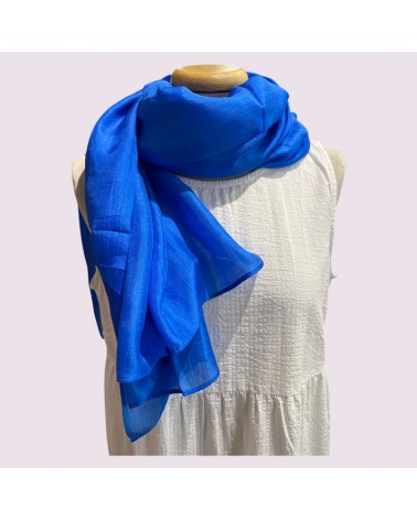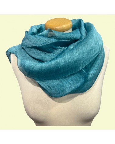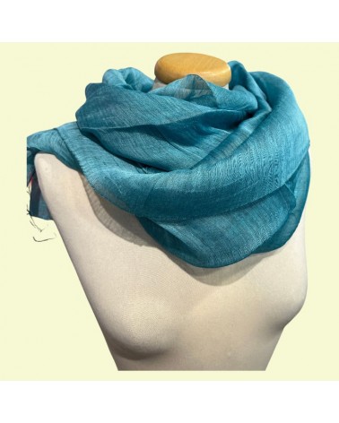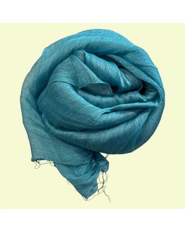 Sciarpa blu azzurro in lino e seta con tinture ecologiche azo-free.
