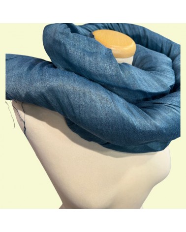 Sciarpa blu mare in lino e seta con tinture ecologiche azo-free.
