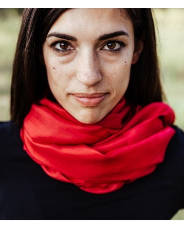 La seta delle nostre sciarpe offre una speciale sensazione di morbidezza e lucentezza.
