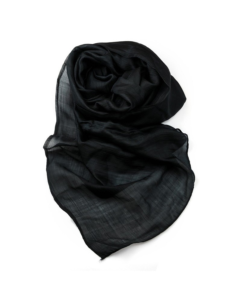 Sciarpa in seta nera elegante con tinture ecologiche filo sottile pregiato.