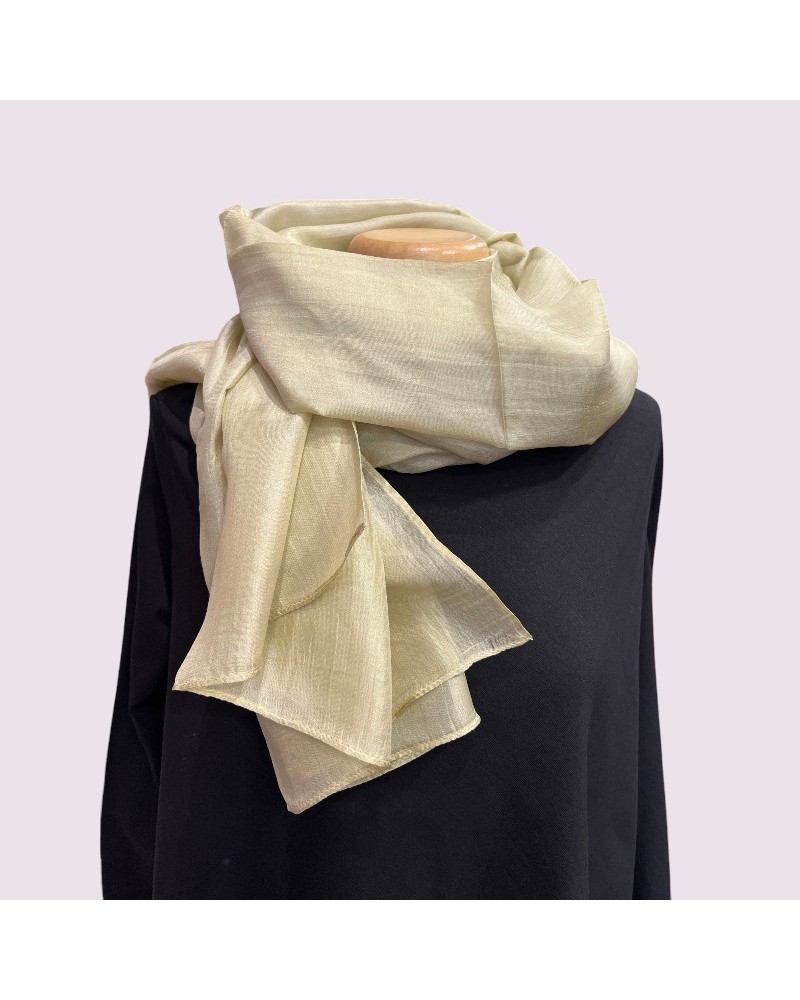 Sciarpa in seta fine, elegante, morbida. La sciarpa, certificata Fair trade, è realizzata a mano con telai artigianali in legno.