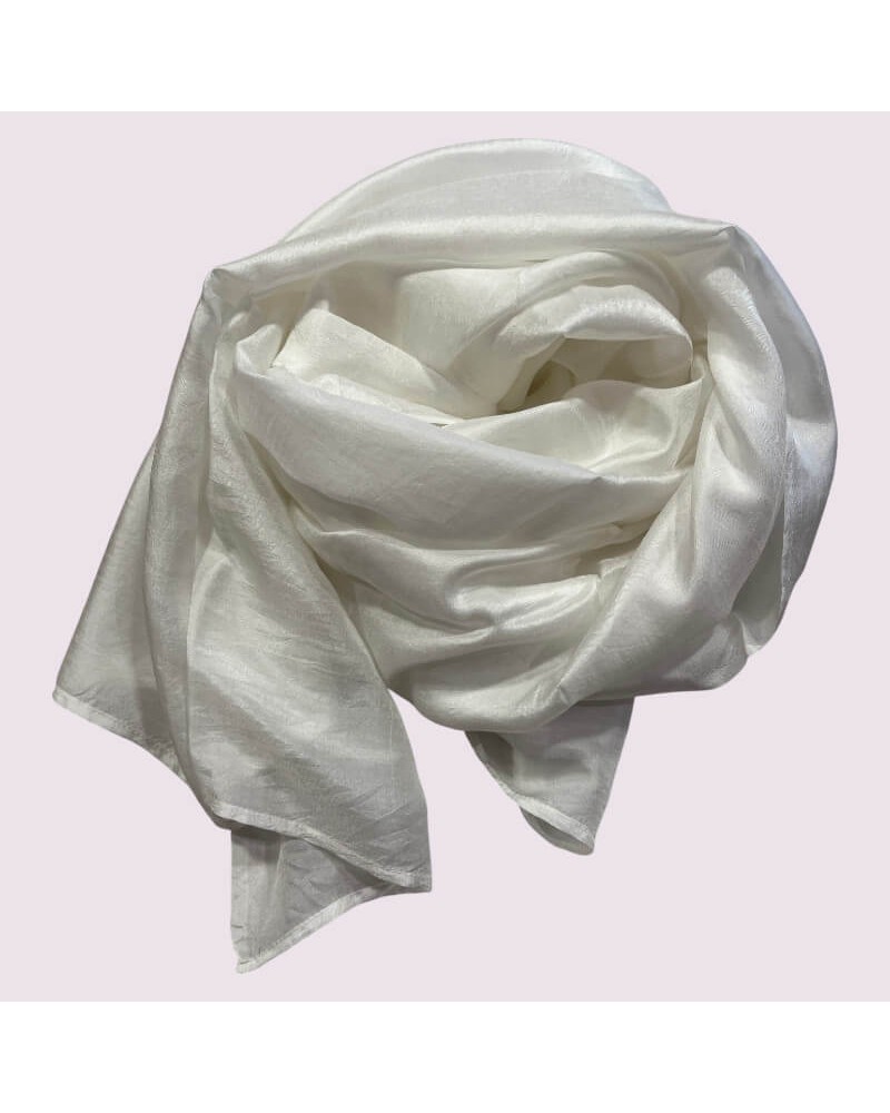 Sciarpa in seta bianca elegante con tinture ecologiche filo sottile pregiato.