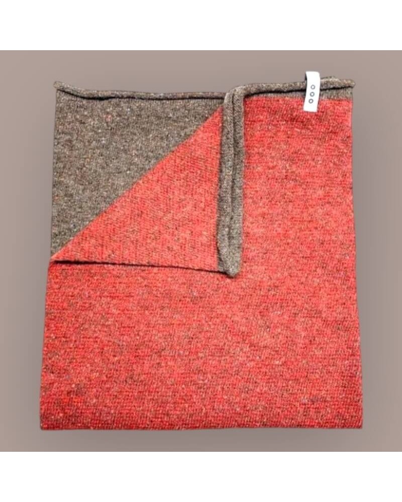 Scaldacollo in lana e seta rigenerata marrone e rosso.