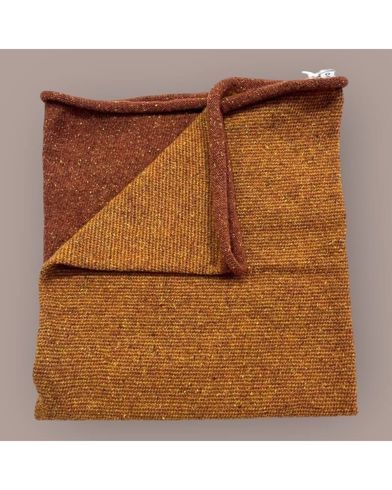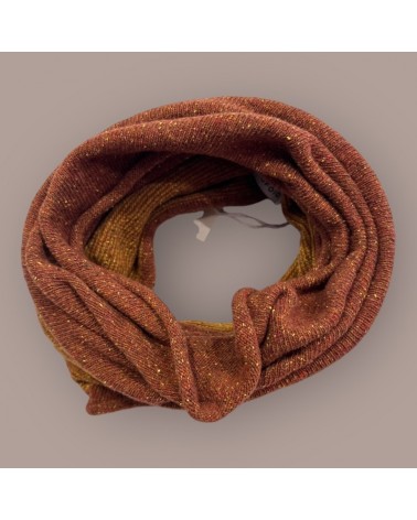 Scaldacollo in lana e seta rigenerata ruggine e giallo ocra.