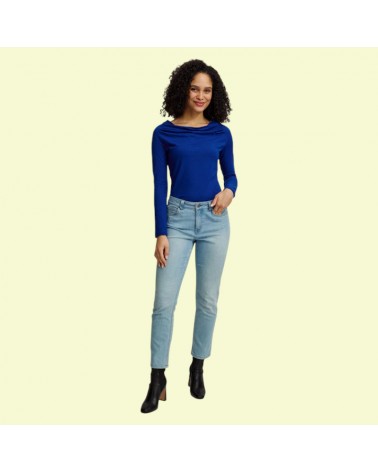 Maglia tinta unita in cotone bio blu elettrico ecosostenibile.