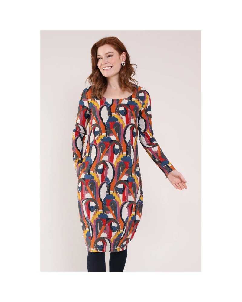 Il nostro abito in jersey a girocollo con stampa Deco ha una delicata forma a palloncino, conferendo un tocco unico a questo stile semplice. Un capo facile da indossare con tasche, perfetto per l'abbigliamento diurno, che può essere facilmente indossato sopra i nostri collant in bambù quando il clima inizia a rinfrescare. Questo vestito è realizzato in cotone biologico GOTS.