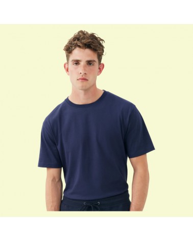Maglia slim uomo manica corta realizzata in cotone secondo standard di produzione etici certificati. 100% Cotone pettinato. 100% fonti rinnovabili. Peso: 155g.