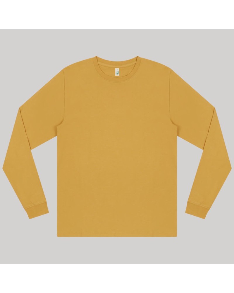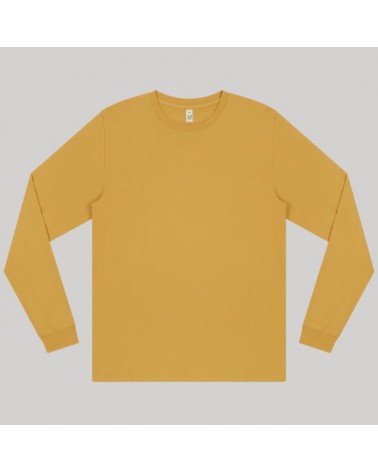 T-shirt manica lunga tinta unita giallo ocra in cotone equo e bio.