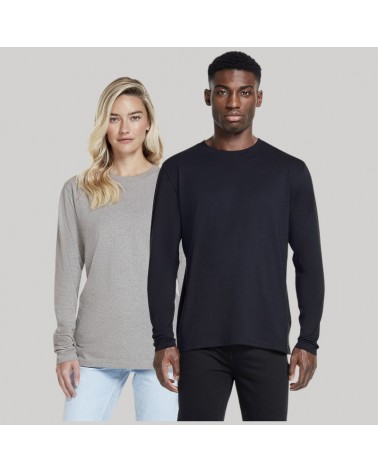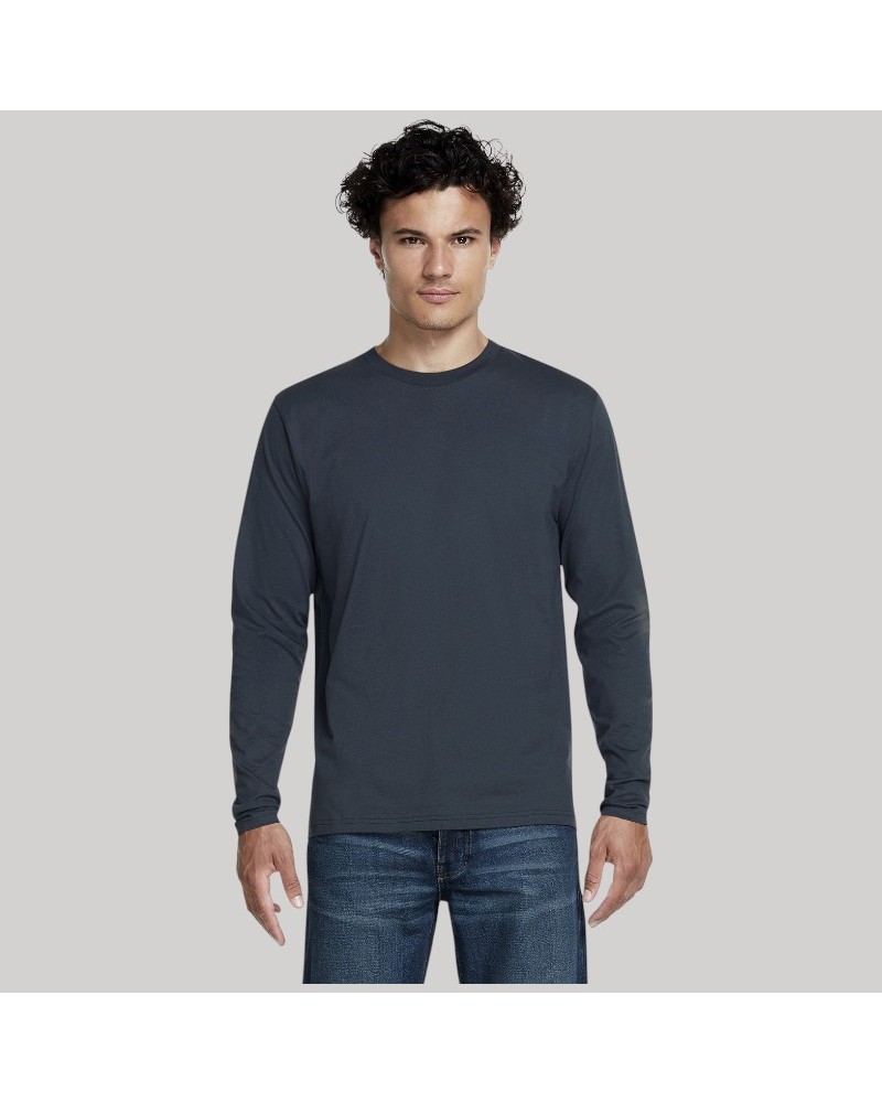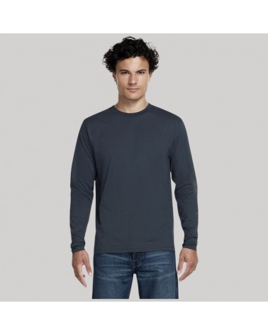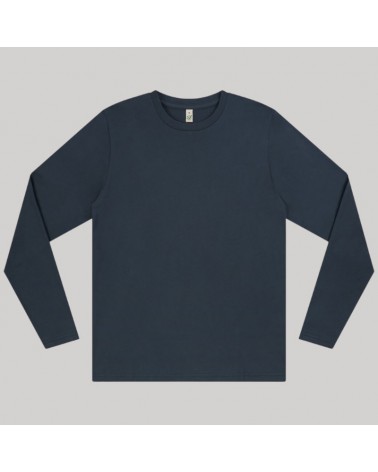 T-shirt manica lunga tinta unita blu denim in cotone equo e bio.