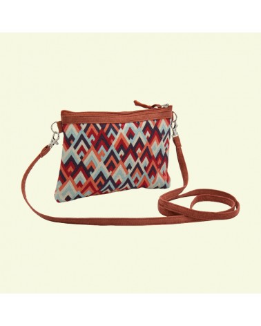 La borsa mini in simil camoscio color ginger si distingue per la combinazione di materiali e tonalità calde, con un elegante retro in tessuto stampato a spina di pesce che le conferisce carattere e originalità.