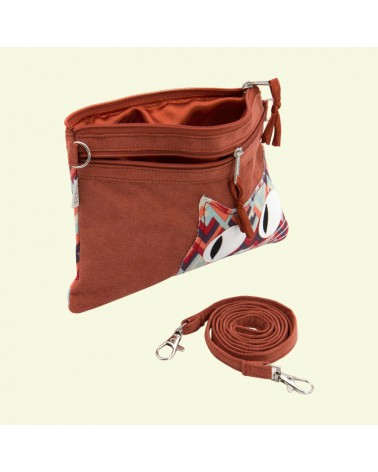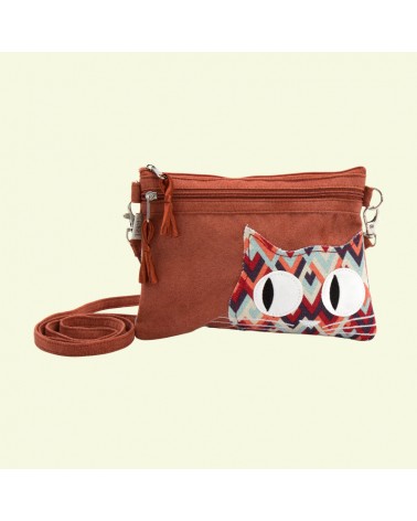 Borsa mini gatto artigianale in simil camoscio color ginger – Retro spina di pesce, doppia zip