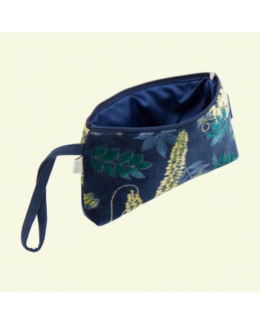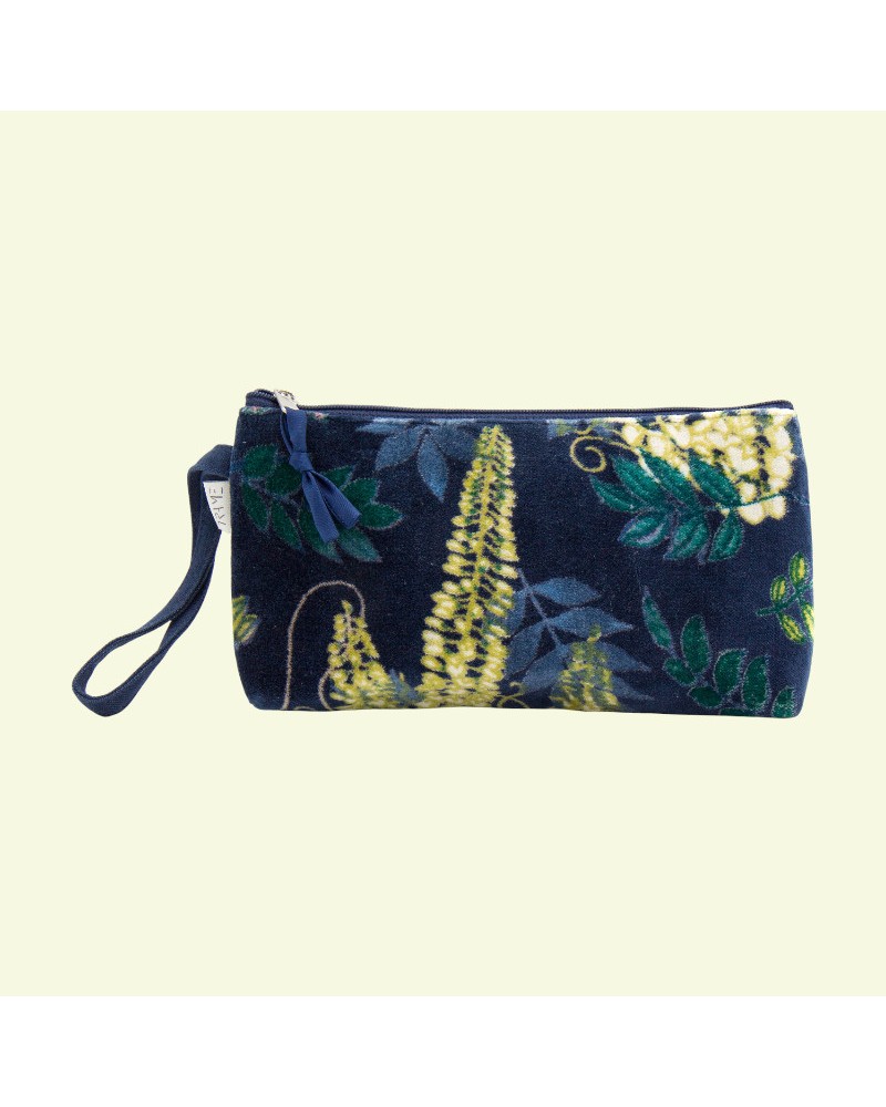 Pochette artigianale in velluto blu con stampa floreale – Chiusura zip, manico