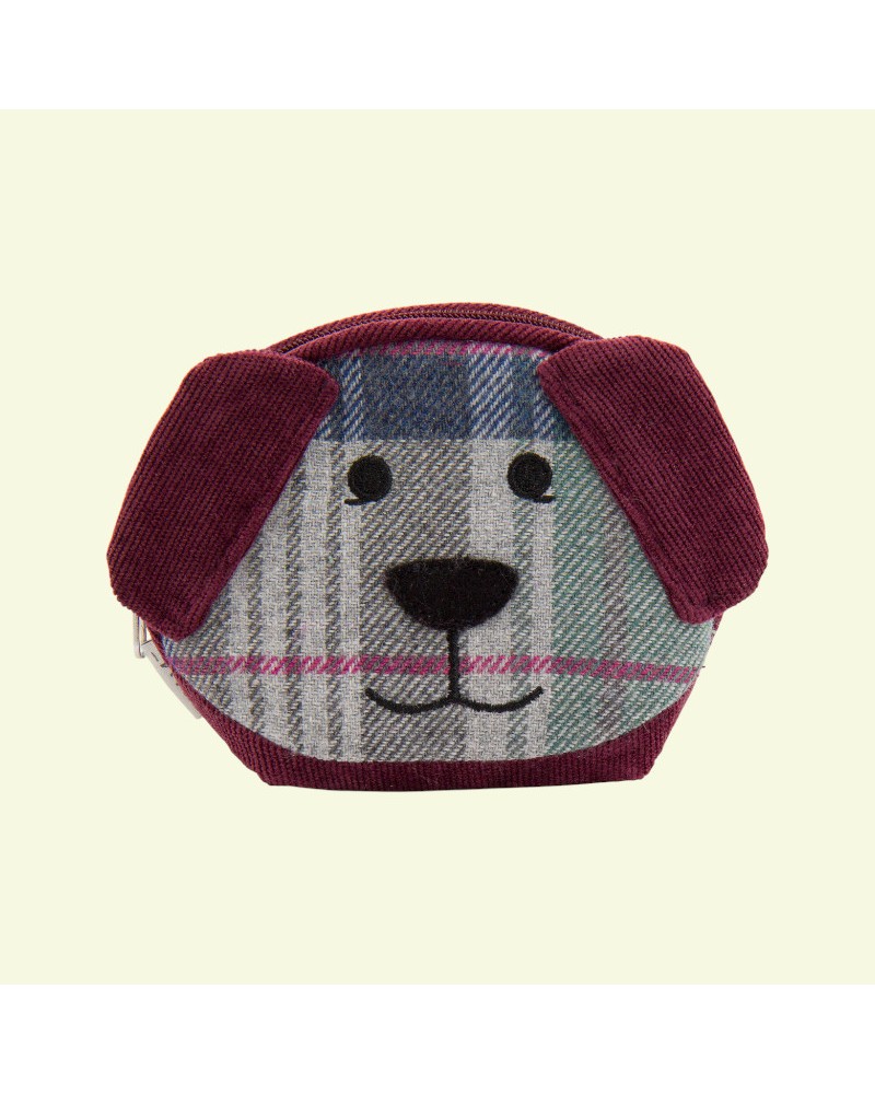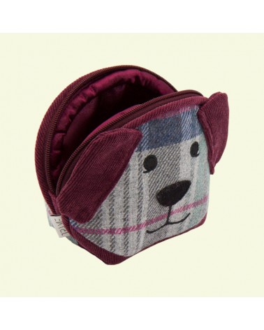 Portamonete a forma di cane in tweed e velluto bordeaux – Chiusura zip