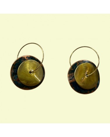 Occhiata veloce Carrello Orecchini artigianali in... Prezzo 29,50 € Orecchini artigianali in metallo ossidato con doppio elemento circolare.