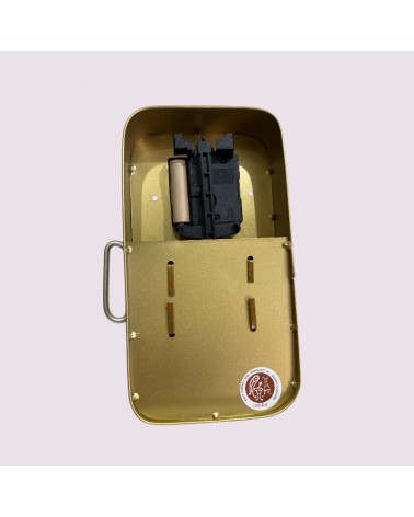 Un orologio a forma di scatola di sardina con pendolo, realizzato con metallo riciclato in Colombia. Un progetto che unisce il recupero di materiale destinato alla discarica e le capacità artigiane locali. Commercio equosolidale. Batteria AA. Dimensioni 22x12x5.