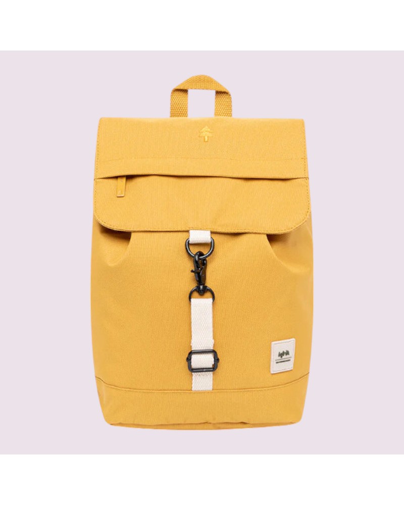 Zaino piccolo giallo mostarda in plastica PET riciclato.